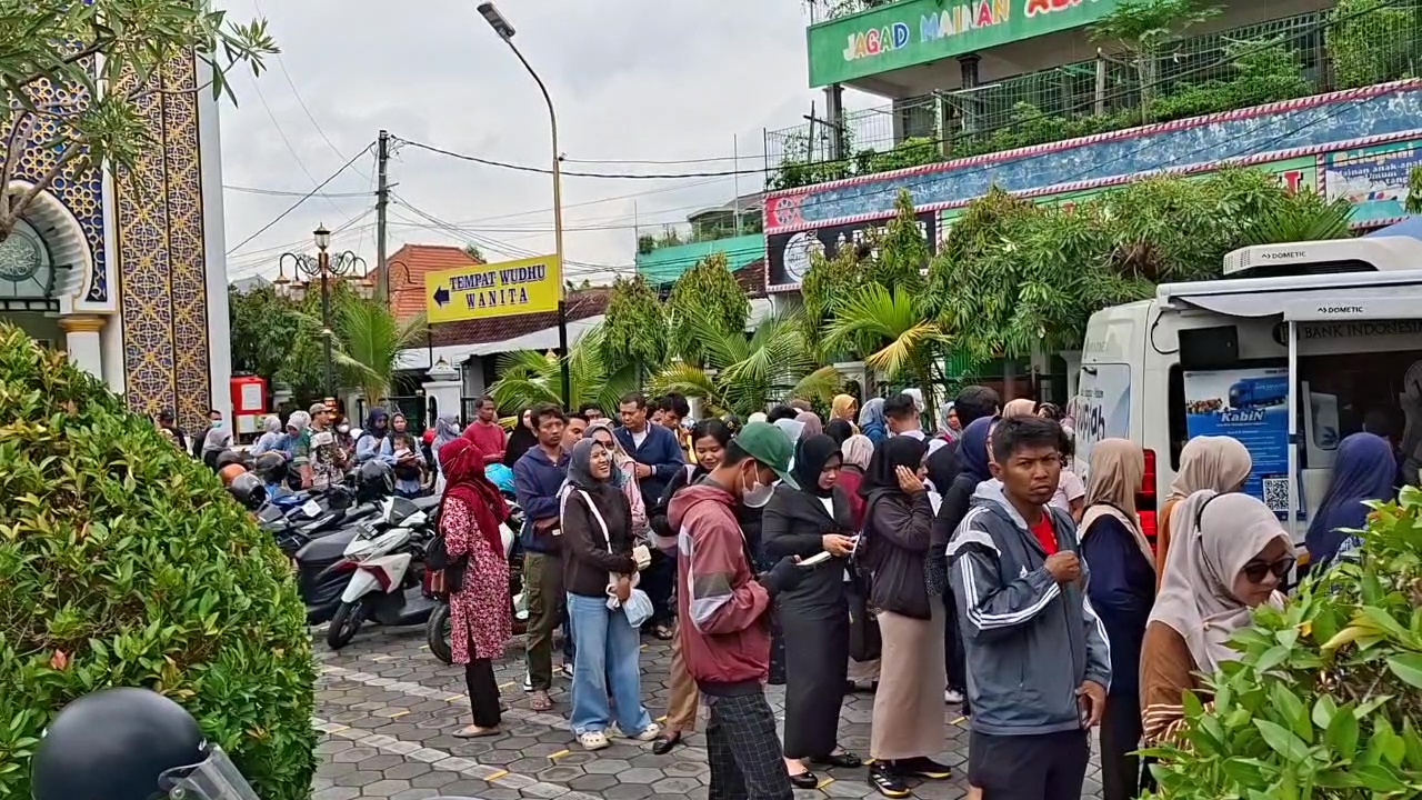 Ratusan warga mengantre panjang di halaman parkir Masjid Agung Baitul Hakim untuk menukarkan uang baru di awal Ramadan 2026. Layanan yang dibuka oleh Kantor Perwakilan Bank Indonesia Kediri ini disambut antusias, bahkan warga dari luar daerah datang demi mendapatkan pecahan uang layak edar untuk kebutuhan Idulfitri.