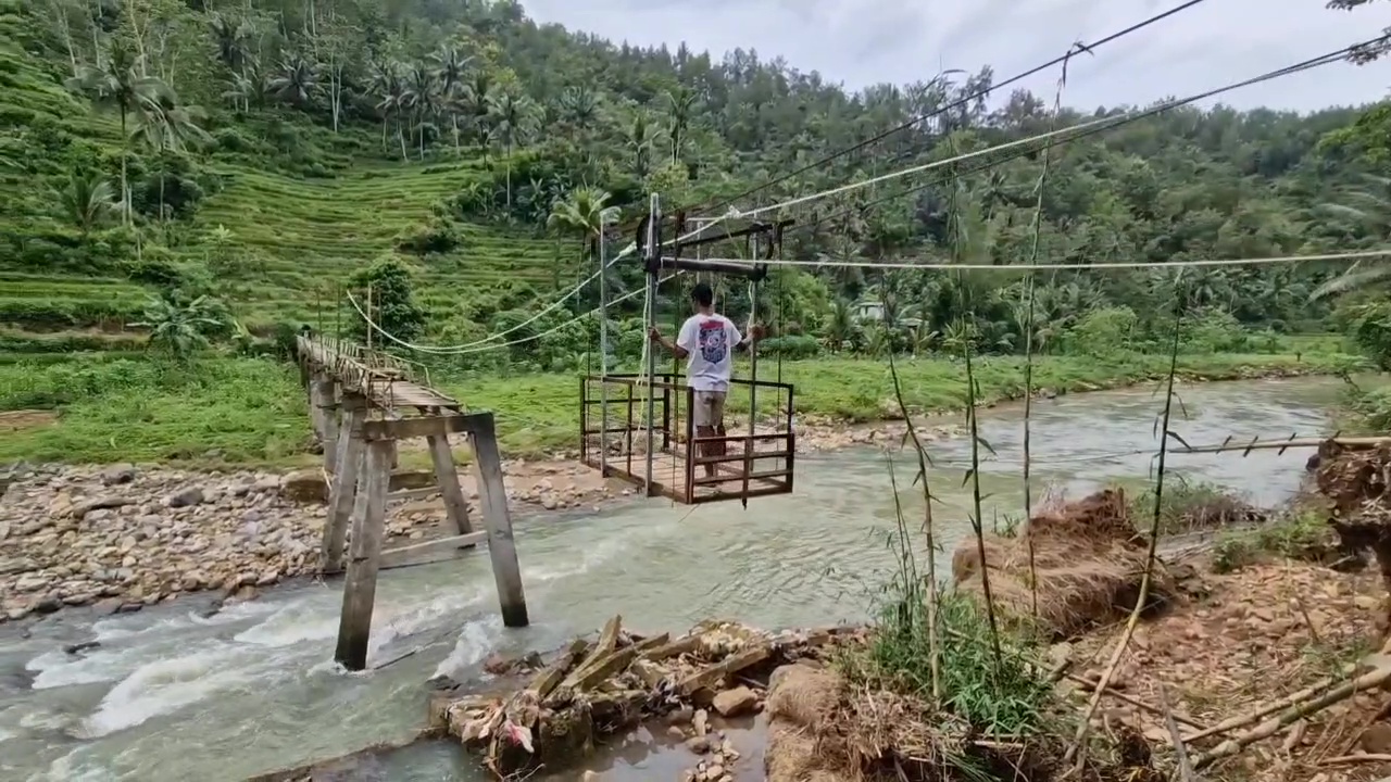 Akibatnya, warga terpaksa membangun jembatan gantung sederhana yang kini menjadi akses utama untuk bersekolah, bekerja, berobat, dan beraktivitas sehari-hari, meski kondisi jembatan tersebut dinilai cukup berisiko.